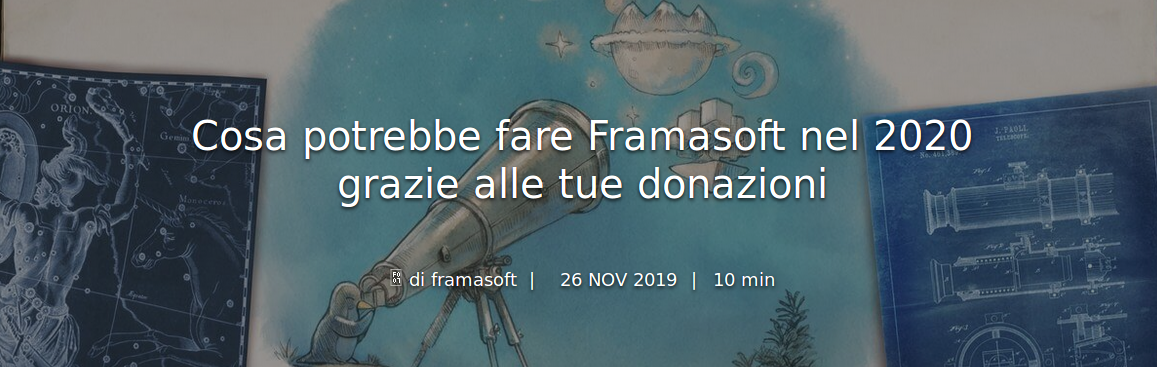 Riprendo e traduco da Framablog l'articolo Ce que Framasoft pourrait faire en 2020 grâce à vos dons.